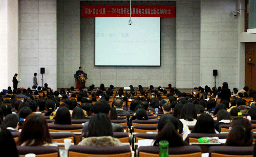 3月18日-20日,2014年外研社发展战略与编辑出版能力研讨会在外研社国际会议中心召开。蔡剑峰社长、徐建中总编辑率社编委、分编委会的各级领导以及外研社编辑岗位近500人,以“聚焦编辑职责,关注编辑能力提升与职业发展”为主旨,以外研社创新和发展的核心——编辑为主角,打造了一个打破边界、突破部门区隔和职级限制的沟通交流平台。大会围绕外研社面临的重点问题,组织了各种形式的报告和讨论,以期凝聚共识,思考主要方向,进行智慧碰撞。
