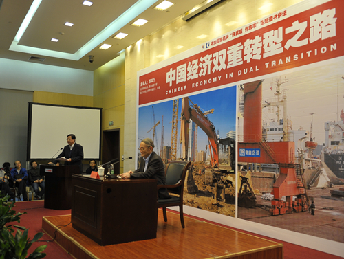 讲坛主持人、中国新闻出版研究院院长郝振省介绍了本期讲坛的有关情况。他讲到,“中国经济双重转型之路”这个演讲题目也是今天馈赠于各位的厉教授新近出版的一本经济学著作的书名,这本书也是中央国家机关工委和国家新闻出版广电总局隆重向全国推荐的一部经济学著作。今天这个讲坛请厉教授来,是为了配合十八届三中全会的学习和总书记一系列讲话的精神,因为三中全会特别提出经济体制改革是全面改革的重点,核心问题是处理好政府和市场的关系,使市场在资源配置中起决定性的作用,提出了坚持和完善基本经济制度,完善产权保护制度,积极发展混合所有制经济和推动国企的改革,支持非公经济健康的发展,这些内容都是厉教授这部重头著作里面所深入阐述的问题。总书记在对《决定》作解释的时候,也强调要突出经济体制改革的牵引作用。从一定意义上讲,厉先生的著作和他今天的深度演讲会成为我们破解、认识谜团,感觉、理解三中全会精神和总书记讲话的一把钥匙,是我们谈理论思想高度的一把旗帜,也是我们全面贯彻经济体制改革和履行我们职责的一条准绳。