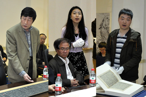 大众分社编辑任平、仇倩倩、栾捷分别从传世、收藏价值以及工艺等几个方面对上海图书馆授权复制的《王羲之十七帖》《明马湘兰致王稚登手札八封》《宋刻汉丞相诸葛忠武侯传》新品作了赏析介绍。之后与会专家学者便展开了热烈的讨论。