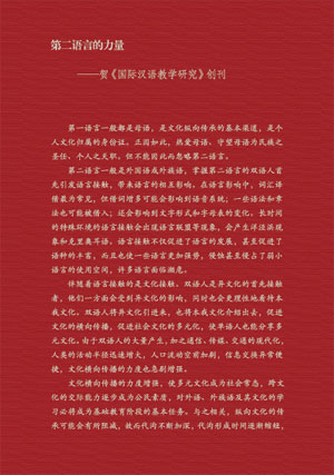 《国际汉语教学研究》创刊号,以其明确的办刊方向、专业的办刊理念、高远的学术追求和典雅的装帧设计,得到了学界同人的广泛肯定、赞许和喜爱。