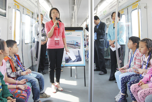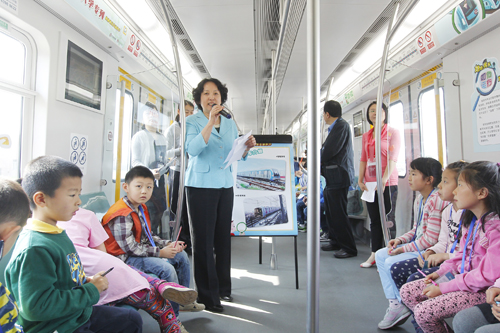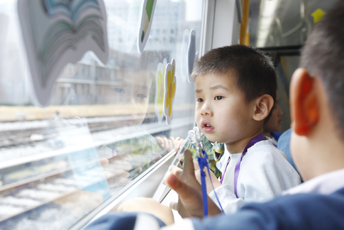 据了解,“4号线儿童大学专列”是专门为儿童大学学员们装饰的一列特殊列车,每节车厢内张贴着如“地铁列车和火车有什么区别”和“地铁列车怎么洗澡”等题目和答案,并将定期更新,为孩子们打造一列揭秘轨道交通科学的列车。2014年,儿童大学项目将围绕“地理”+ “天文”展开,从轨道交通科学到天文学,帮助更多的孩子接触专业领域的知识,开拓视野,培养好奇心。