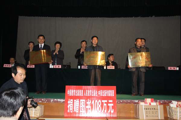4月16日上午,中国教育出版传媒集团、人民教育出版社、中原出版传媒集团“爱心图书馆”捐赠及授牌仪式在河南周口市举行。本次捐赠活动为周口市中小学生捐赠图书价值108万元。