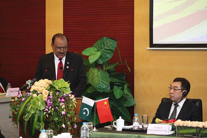 由高教社和巴基斯坦驻华大使馆联合举办的《乌尔都语汉语词典》新书发布会于2014年5月20日在上海复旦大学举行。巴基斯坦总统马姆努恩•侯赛因作为首席嘉宾出席发布会、致辞并题词祝贺高教社成立60周年。巴基斯坦驻华大使马苏德·哈立德、中国驻巴基斯坦大使孙卫东、复旦大学校长杨玉良、教育部社科司司长张东刚、国家新闻出版广电总局进口管理司副司长赵秀玲,词典主编、北京大学外语学院教授孔菊兰等出席发布会并致辞。阎志坚副总编辑、查卫平副总编辑出席发布会。巴基斯坦总统夫人等巴基斯坦代表团成员,北京大学、复旦大学代表,高教社人文社科学术出版事业部、海外合作部、市场与教学服务部有关人员参加发布会。发布会由苏雨恒社长主持。