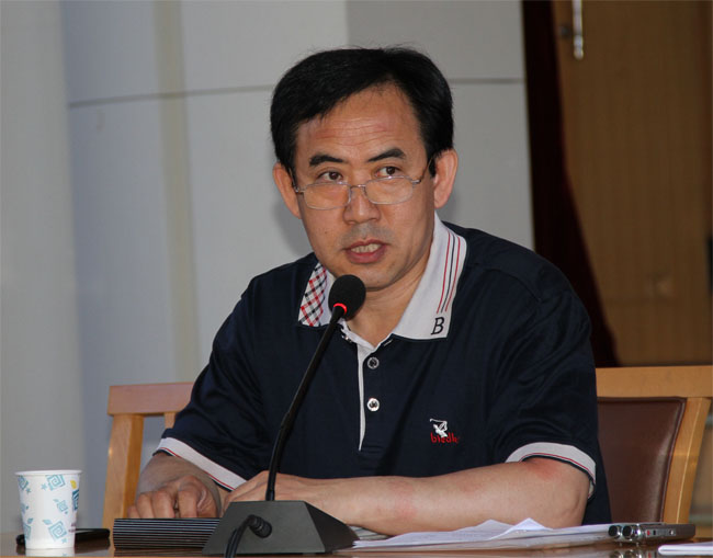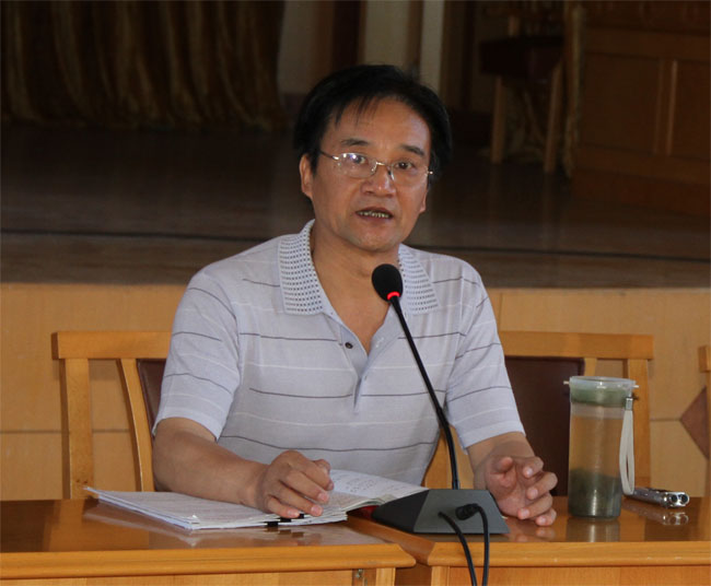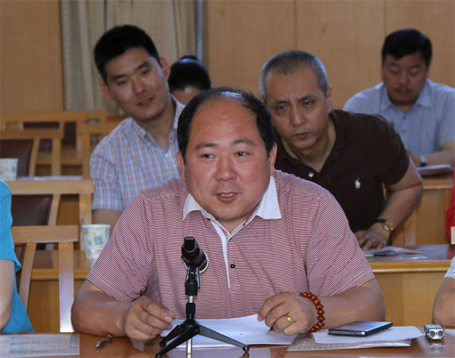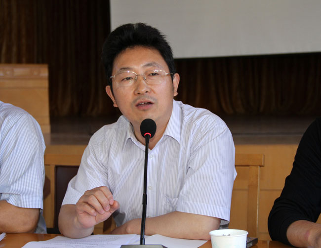河南省黄河教育图书供应社高校图书代办站站长王亚林主持大学出版社新优教材推介洽谈会