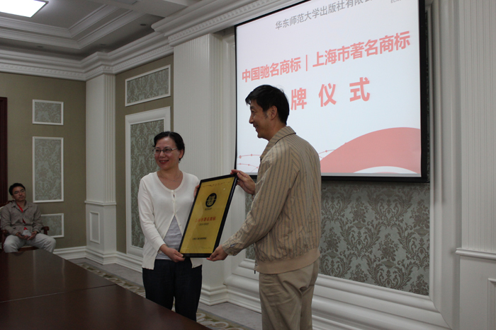 华东师范大学出版社有限公司拥有的注册商标“ECNUP”图形商标于2014年被国家工商行政管理总局商标局认定为中国驰名商标,同时被上海市工商行政管理局认定为“上海市著名商标”。6月4日上午,上海市工商行政管理局局长陈学军、市局分管处长、普陀区工商局局长、分管副局长、商标科长等一行6人为华东师范大学出版社授予牌匾。出版社社党总支书记朱文秋主持会议,社长王焰代表出版社发言并接受牌匾、证书,出版社多位社领导、职能部门负责人和近30位员工代表共同见证了这一荣耀的时刻。