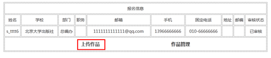 3、提交后刷新页面,可以看到报名信息,点击“上传作品”开始上传图书信息;