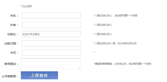 4、填写图书信息,图片封面要求300*300px,jpg格式,点击提交后不能修改;