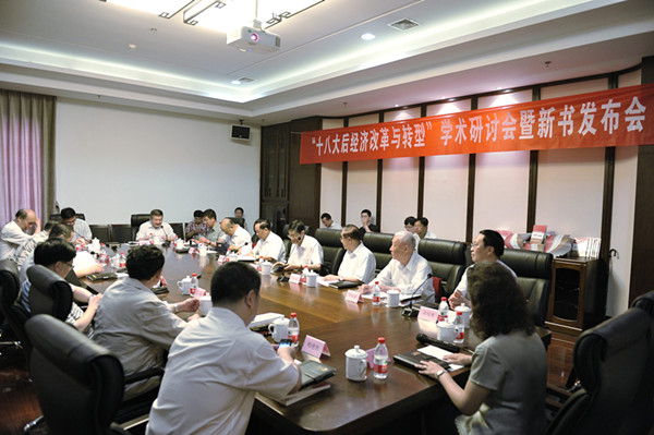 与会嘉宾,中国经济体制改革研究会会长高尚全教授,中国行政体制改革研究会会长魏礼群教授,中国社会科学院周叔莲教授、金碚教授、高培勇教授、张平教授,首都经济贸易大学文魁教授,北京师范大学李晓西教授、赖德胜教授,辽宁大学黄泰岩教授,中国人民大学胡乃武教授、李义平教授,就张卓元教授的新书以及“十八大后经济改革与转型”分别作了发言。与会专家认为,《十八大后经济改革与转型》所选文章以弘扬党的十八大精神为指导,深刻分析了十八大以来中国经济改革和转型的重要政策及其产生背景和深刻内涵,权威性强,可读性高,对学习和理解中国经济的发展具有较强的指导意义。