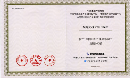会上发布了“2013中国图书世界影响力出版100强”名单,西南交通大学出版社全国排名第82位。作为文化传承与知识创新主要阵地的大学出版社,本次共有21家入围。