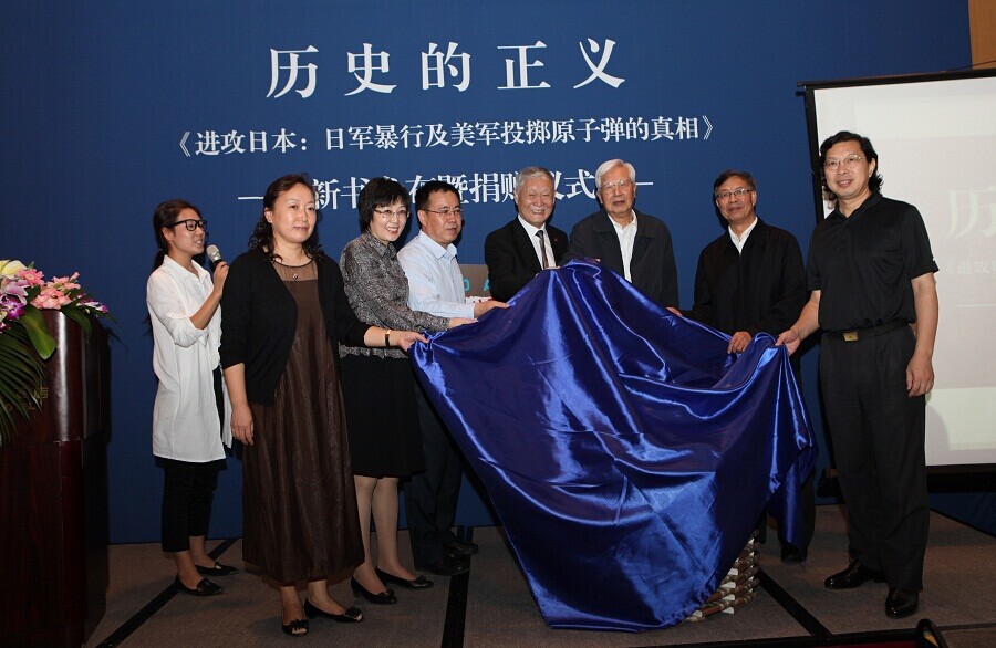 2014年9月18日,即“九一八事变”83周年纪念日的下午,由广西师范大学出版社主办的“历史的正义——《进攻日本:日军暴行及美军投掷原子弹的真相》新书发布暨捐赠仪式”在北大博雅国际会议中心举行。原全国政协副主席、原致公党中央主席、中国人权研究会会长罗豪才,广西师范大学副校长钟瑞添,广西师范大学出版社集团有限公司董事长何林夏,中国国家图书馆代表馆长助理孙一钢,中国军事博物馆代表政治部主任高明,中国人民抗日战争纪念馆代表信息资料室主任赵迪立,《进攻日本》译者、美籍华人臧英年等出席此次新书发布和捐赠仪式。
