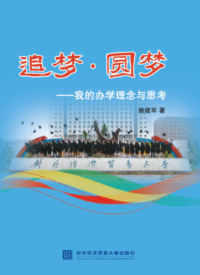 近日,对外经济贸易大学校长施建军教授的《追梦.圆梦——我的办学理念与思考》一书由对外经济贸易大学出版社正式出版发行。书中不仅分享了施建军作为大学校长自己的办学理念与思考,而且深刻描绘了全体贸大人五年来的发展经历、追梦和圆梦的心路历程。