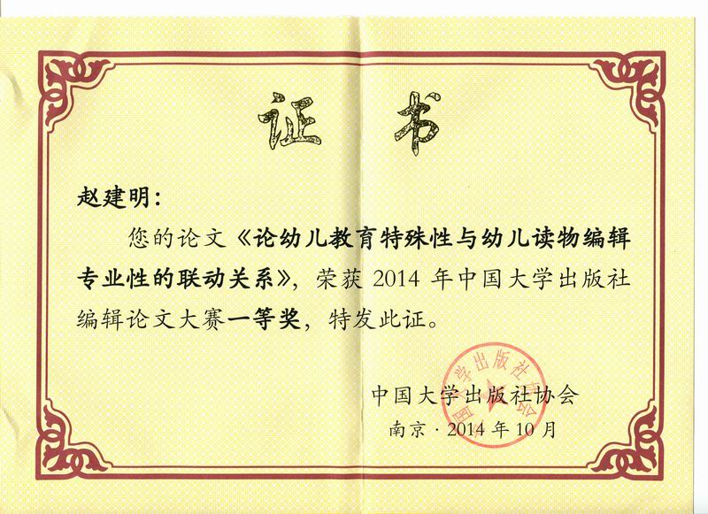 日前,由中国大学出版社协会主办的第一届中国大学出版社编辑论文大赛获奖名单揭晓,并于11月1日在南京国际展览中心举办了颁奖活动。李东总编辑、幼儿教育编辑部赵建明代表教育科学出版社参加了颁奖活动,并同时参加了2014年大学出版社编辑与出版论坛其他相关活动。