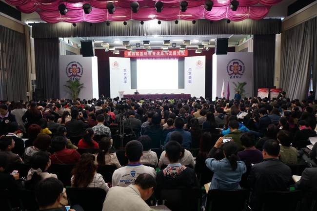 由人民教育出版社和教育部基础教育课程教材发展中心主办、《课程·教材·教法》编辑部和清华大学附属小学承办、中国教育学会教育学分会和《基础教育课程》杂志社协办的第四届“基础教育改革与发展论坛”于10月17-18日在北京清华附小成功召开。教育部基础教育二司副司长申继亮,中国教育出版传媒集团董事长杨光,教育部基础教育课程教材发展中心主任田慧生、副主任刘月霞,人民教育出版社总编辑韦志榕、党委书记郭戈、副总编辑魏运华,清华大学副校长姜胜耀、清华附小校长窦桂梅,北京市朝阳区教委副书记刘丽彬、石景山区教委副主任聂晶,以及来自全国各地的900多位中小学校长、教师、教研员,基础教育管理者,师范院校师生,以及科研院所的研究人员参加了论坛活动。