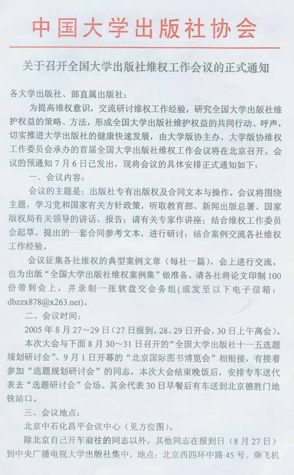 关于召开全国大学出版社维权工作会议的正式通知 - 信息公告 - 中国高校教材图书网