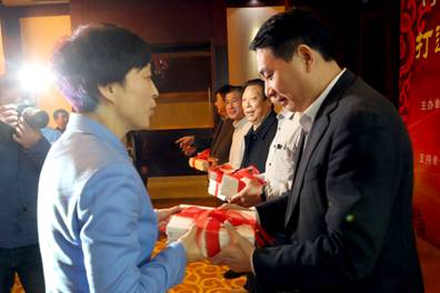 大河网络传媒集团总经理韩嘉俊向作者赠书