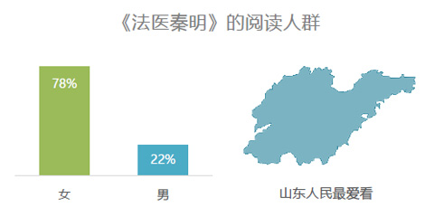 今年悬疑类电子书在掌阅上格外受到年轻人关注。以热门作品《法医秦明》为例,其读者主要是90后,而女性用户更达到了78%,从地域来看,山东读者最爱悬疑类作品。