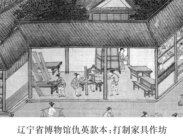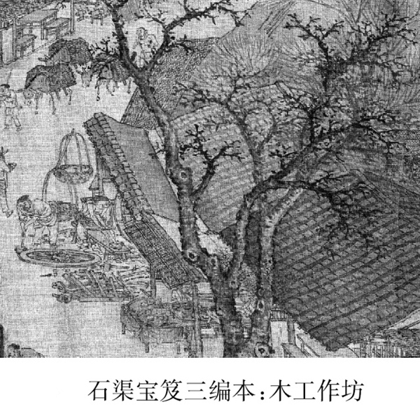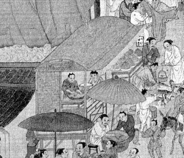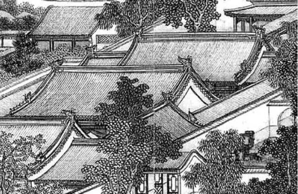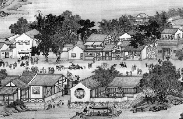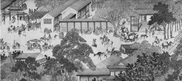 石渠宝笈三编本:街道界面店铺与住宅分明,树、井、凉棚构成街道的二次轮廓线