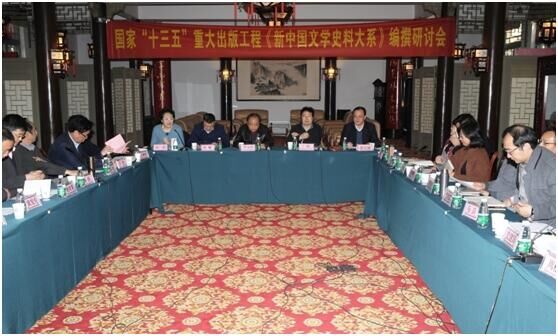 2017年3月5日,国家“十三五”重大出版工程《新中国文学史料大系》编撰研讨会在南京召开。《新中国文学史料大系》系国家社科基金重点项目相关成果,2016年5月入选国家“十三五”重点图书出版规划项目之重大出版工程。该项目分为22个专题、45卷,时间跨度大、内容覆盖面广,对新中国文学史料进行全面、系统的发掘、搜集、整理和研究,并按文学史编撰、文学思潮研究、文学传播形式、文体和文类研究的体系分类编撰,作者队伍涵盖北京大学、美国哈佛大学、南京大学、中国现代文学馆、中国社会科学院、复旦大学、浙江大学、华东师范大学、山东大学、上海外国语大学等国内外近二十所著名高校和文学研究机构的研究者,汇聚了当代文学研究领域内众多知名的专家学者。