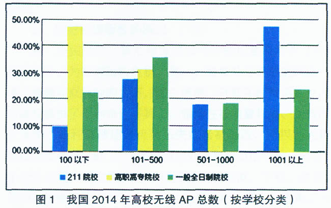 图1为2014年我国高校无线网结建设的调研情况,显示我国高校无线网络建设已经初具规模,这为高校移动学习提供了技术保证,再加上国家、地方以及高校对信息化教学的大力扶持,使得移云力学习成为探索解决诺多高校英语教学困境的技术出路之一。