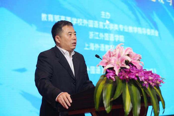 外指委副主任委员、英语分指委主任委员仲伟合教授作了题为“《国标》指导下的英语类专业课程改革与建设”的主旨报告,详细阐述了三大问题:英语类专业《国标》课程体系制定的背景及课程内容、英语类专业课程体系当前存在的问题以及《国标》背景下我国英语类专业课程体系改革与建设。