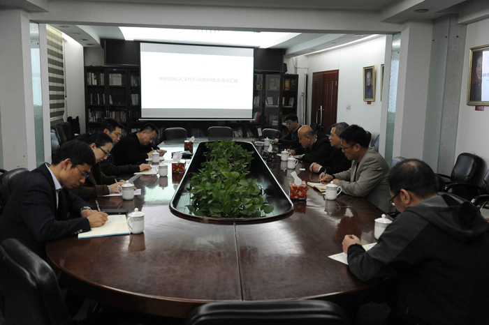 洪大用副校长强调了社科网作为高校人文社会科学的门户网站对于人文社会科学信息交流的重要性。同时社科网在扩大高校人文社会科学的影响、加强人文社会科学科研管理等方面发挥着重要的作用。学校非常重视社科网平台的建设。随后社科网从网站的栏目设置、运营的为社科管理服务的软件平台及各种数据库资源、社科网机构和人员设置等方面进行了工作汇报。