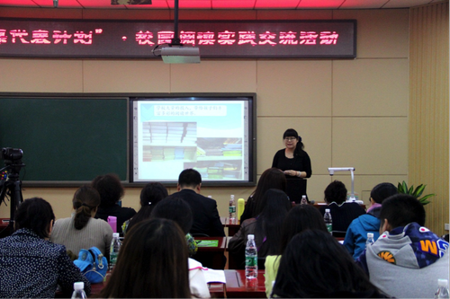 中国宋庆龄基金会外研文化教育基金公益项目“外研课代表计划”启动2年以来,在各学校生根发芽。在指导教师们的悉心组织下,诸多课代表参与校开展了各具特色、丰富多彩的校园阅读活动,在培养学生双语阅读兴趣、提升学生英语阅读能力等方面,取得了显著的成效,积累了有益的实践经验。为促进各学校之间的交流共进,促进教师跨地区、跨学校的经验共享,本次交流活动邀请了海淀区西二旗小学、西城区奋斗小学与朝阳区首都师范大学附属实验学校的三位外研课代表指导教师与会,分享本校的校园阅读活动实践与经验。