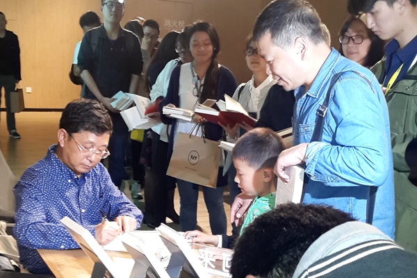 分享会最后,阿来和穆涛为购书读者签名,并合影留念。