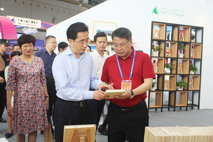 自治区文化厅厅长黄宇视察广西师范大学出版社展区(李显杨 摄)