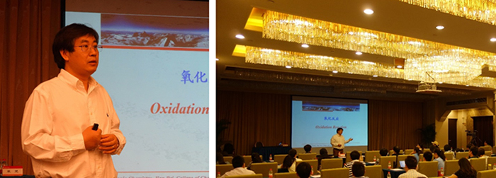 有机化学分会场,由北京市教学名师、“长江学者”特聘教授、北京大学化学学院裴坚教授带来“氧化反应和重排反应”的主题讲座。裴坚教授根据当前北大化学学院教学改革的背景,介绍了《基础有机化学》(第4版下册)修订中使内容“简单化”的总体思路,并选取有机化学中最重要也最难讲的氧化反应及重排反应进行了示例讲解。