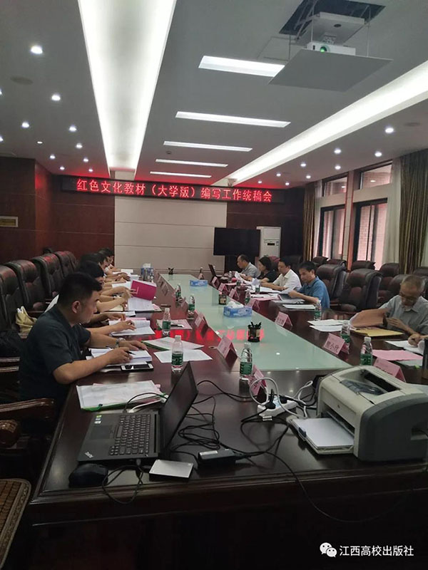 为继续推进红色文化教材(大学生版)顺利出版,提升稿件质量,2018年7月6日—7日,“红色文化教材(大学版)编写工作统稿会”在上饶师范学院召开。赣南师范大学党委委员、副校长邱小云,上饶师范学院党委副书记刘国云,江西财经大学马克思主义学院院长陈始发,南昌航空大学中国红色文化研究院院长李康平等15位专家学者参会。上饶师范学院党委书记朱寅健,副书记、院长詹世友到会看望与会代表并讲话。江西高校出版社副社长吴子明及有关编辑人员参会。会议由邱小云副校长主持。