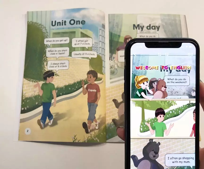 早在2012年,专注教科书的日本出版公司“東京書籍株式会社”(Tokyo Shoseki)就发布了系列AR教科书。其中有一部英语教科书《New Horizon》,面向成年人,目的是吸引具备高中英语水平的成年人并使他们重新开始学习英语。《New Horizon》添加了AR功能,可以让书中的萌妹子和小鲜肉帅哥全部活灵活现地呈现在读者面前。只需要在手机上下载配套的应用,对准英语教科书中某一页的位置进行扫描,就可以看到该页的动画剧情。“東京書籍株式会社”出版的图书中不仅有英语AR教材,还有涉及到物理、天文、化学、数学等学科的AR教科书。其目的是通过使用AR技术连接教科书和数字内容,从而提高学习者对教科书中内容的理解。