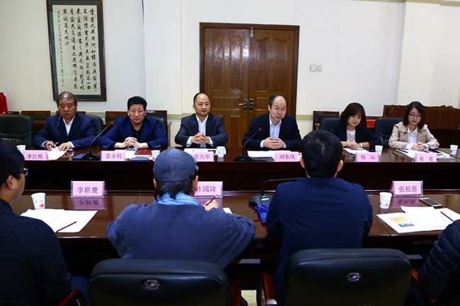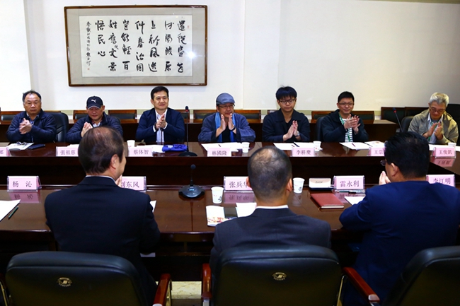 2018年10月15日,台湾工艺发展研究中心蔡体智组长、台湾工艺之家协会林国隆创会理事长带领张祖慈、钟荣乡、李耕庆、王崇信、王俊凯等团员组成的台湾顶级工艺代表团来到陕西师范大学出版总社交流访问。陕西师范大学出版总社社长刘东风、总编辑雷永利、社长助理杨沁、办公室主任李江明、文史出版中心主任侯海英、执行主任曹联养及西咸新区空港新城招商一局副局长张兵华、招商主管郭敏等参加座谈会。座谈会由雷永利总编辑主持。