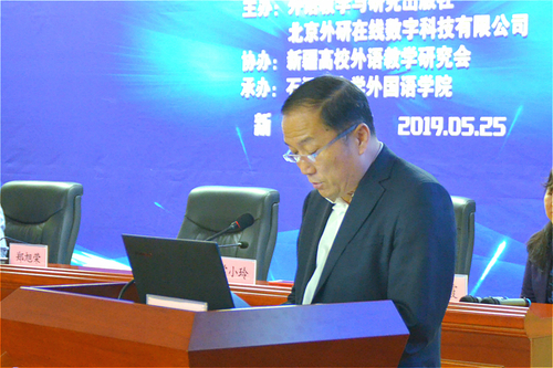 郑旭荣副书记代表石河子大学对全体参会来宾表示热烈欢迎。他表示,本次会议聚焦高等外语教育在新科技革命背景下的新举措,探究高校外语教学新模式,在机遇与变革时期充分利用人工智能、大数据、移动互联网等技术,实现课程体系、教学内容、方法手段、教学实践的改革与创新,具有重要意义。