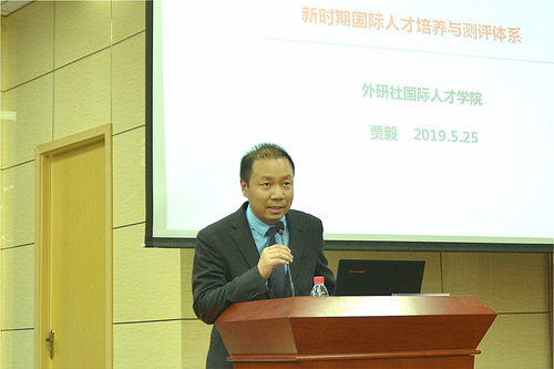 外研社国际人才学院执行院长贾毅先生介绍了新时期国际人才培养与测评体系。他认为,当前社会对外语人才的需求集中于少数尖端专业人才和大量外语复合型人才。外语人才所应具备的国际化能力体现在语言、见识、思维等方面。国际人才学院通过聚焦真实职场应用的国才考试和以“职场英文能力系统化提升项目”、“跨文化沟通能力系统化提升项目”等为代表的多样化项目合作,能够真正助力培养满足国家发展和社会需求的国际化人才。