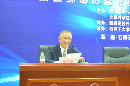 石河子大学党委副书记郑旭荣教授、新疆高校外语教学研究会会长徐世昌教授与外语教学与研究出版社副总编辑常小玲女士分别致辞。