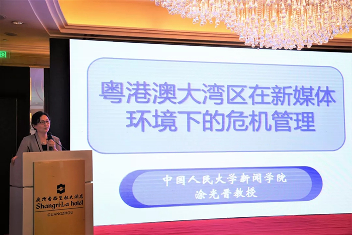 中国人民大学新闻学院教授涂光晋从当下新媒体环境下的青年创业面临的挑战出发,发表了《粤港澳大湾区在新媒体环境下的危机管理》,提出了在新媒体环境下如何构建新思维、如何有效防范化解危机的新思路。