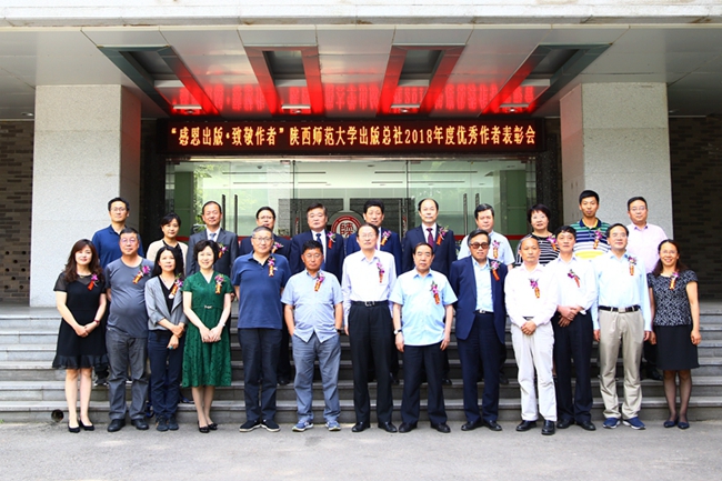 2019年5月24日,陕西师范大学出版总社在崇鋈楼学思堂隆重举行“感恩出版•致敬作者”2018年度优秀作者表彰会。贾平凹、阿来、王子今三位2018年度突出贡献作者和李继凯、王双怀、贾玲、王向阳、孙琪斌、束鹏芳、吴举宏等七位2018年度优秀作者受到表彰。焦凌、赵荣芳、高传轩、潘红玉等四位2018年度优秀编辑同时受到表彰。