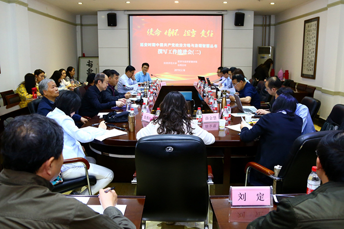 5月18日上午,“延安时期中国共产党政治方略与治理智慧”丛书撰写工作第二次推进会在总社举行。中国延安学研究中心主席,延安大学教授郭必选,陕西师范大学马克思主义学院教授王俊栓,陕西省社会科学院政法所所长郭兴全,西北大学马克思主义学院副院长、教授李建森等专家出席研讨会。学校哲学与政府管理学院院长、丛书主编袁祖社,与来自陕西省社会科学院、西北工业大学、西北政法大学、扬州大学、陕西师范大学等高校、科研院所的10余位作者,以及总社董事长兼社长刘东风,大众文化出版中心主任郭永新、副主任刘定,编辑尹海宏、郑萍等参加了活动。研讨会由哲学与政府管理学院政治学系主任、副教授郑家昊主持。