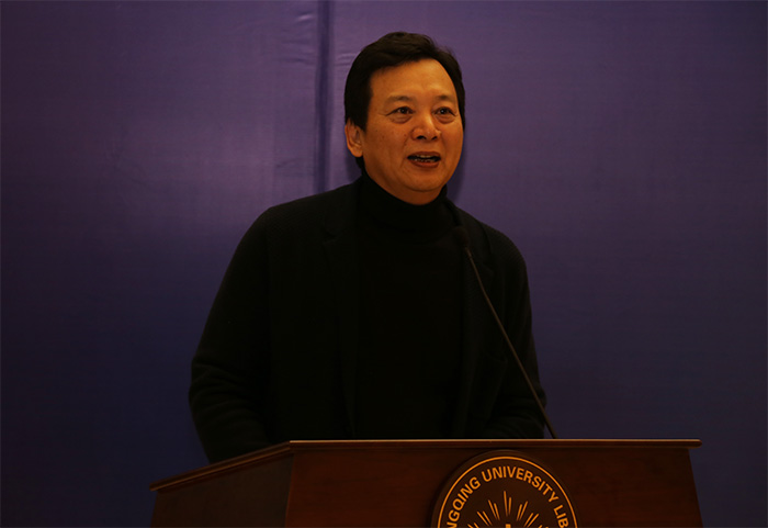 大学版协理事长宗俊峰在致辞中表示,目前各个高校都在进行“不忘初心,牢记使命”的教育活动,今年又迎来了中华人民共和国成立70周年的喜庆日子,双方的合作是非常有益的。中国大学出版社协会有一百零几家单位,主要出版学术著作、教材以及大众图书,有很多的图书都在国家各种奖项中获奖,是中国出版行业一只重要的生命军,为中国的教育事业、文化事业和先进文化的传播做出了自己的成绩和贡献。今天,大学版协把各大学出版社的优秀图书带到重庆大学,向重庆大学的广大师生进行展示,使更多重大师生能够阅读大学出版社的优秀图书,今后这种活动还将持续进行下去。同时,他也感谢各大学版协会员单位的踊跃捐赠,感谢重庆大学对年会举办和图书进校园展示活动的大力支持。