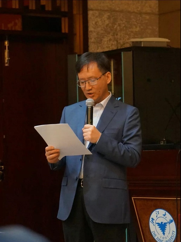 浙江大学出版社总编辑、浙江大学人文学院兼聘教授袁亚春宣读《浙江大学编辑出版学科产学研共同体倡议书》,介绍了产学研共同体成立的背景、宗旨,并代表各成员单位发出了智力资源共享、联合科研攻关、创建实践基地等六项共同倡议。