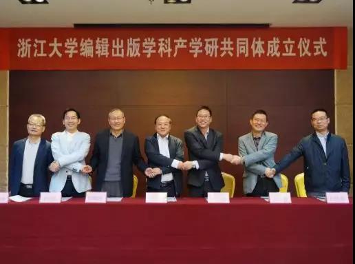 2019年10月31日,浙江大学编辑出版学科“产学研共同体”成立仪式在浙江大学紫金港校区召开的“智媒时代的编辑出版教育高端论坛”上隆重举行。浙江大学编辑出版学科“产学研共同体”由浙江大学编辑出版学科、浙江大学出版社、浙江大学数字出版研究中心联合商务印书馆、华东师范大学出版社、浙江教育出版社、浙江文艺出版社、浙江科技出版社、西泠印社出版社等多家出版机构共同发起,旨在通过共同体的运作实现更加紧密的产学研合作,以应对新时代出版人才培养和出版行业发展的新形势。