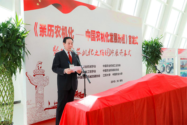 2019年10月30日,《亲历农机化——中国农机化发展历程》图书首发式暨“辉煌农机化之路图片展”开幕式在青岛世博城国际会展中心举行。中国农业机械学会名誉理事长、中国工程院院士罗锡文,中国工程院院士陈温福,农业农村部农机推广鉴定站站长、中国农机学会副理事长刘恒新,中国农业机械工业协会会长陈志,中国农业机械化协会会长刘宪,中国农业机械流通协会会长毛洪,中国农机学会监事长、中国农业机械化科学研究院副院长方宪法,江苏大学副校长全力等领导同志,以及中国农业工程学会、中国农业大学、江苏大学出版社等单位的代表参加简朴而热烈的揭幕活动。