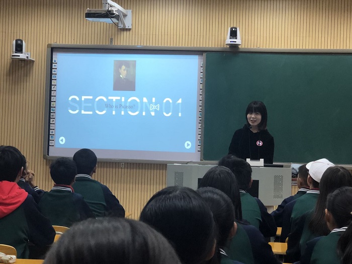 颜冰玉编辑在仁德一中开展了“谁是毕加索”主题课堂教学。课堂上颜冰玉结合绘画艺术,为八年级的学生们讲授了一堂生动活泼的英语课。