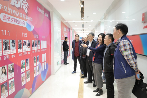 京东零售集团图书文教业务部总经理雷玟为贵州出版集团总经理王先宁一行介绍11.11销售情况