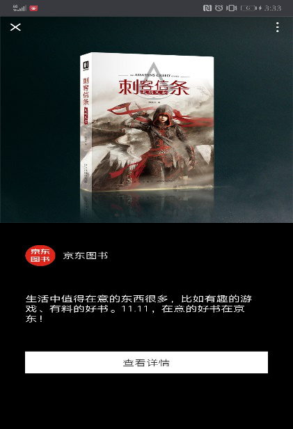 作家联动:特别值得提及的是,京东图书首次在大促活动中与IP结合,吸引用户点击。通过京东京纪圈,京东图书联合了刺客信条、狐狸家《西游记绘本》、小鸡彩虹等IP,这些形象用于专场期各品类专题活动中,以及朋友圈广告和腾讯新闻、腾讯视频等外推广告。如11月6日是童书品类日,页面专题的设计元素中就体现了招财童子、克蕾欧与小酷的IP形象,活泼有趣,抓人眼球。