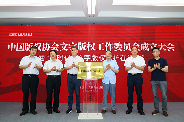 8月29日,中国版权协会文字版权工作委员会(以下简称“委员会”)成立大会在人民教育出版社(以下简称“人教社”)举行。全国政协文化文史和学习委员会副主任、中国版权协会理事长阎晓宏,中宣部版权管理局局长于慈珂出席成立大会并讲话。中央网络安全和信息化委员会办公室政策法规局副局长、中国版权协会副理事长刘少文宣读委员会成立的批复。中国教育出版传媒集团有限公司总经理、中国版权协会副理事长殷忠民,人教社社长、中国版权协会副理事长黄强参加大会。与会领导共同为委员会成立揭牌。
