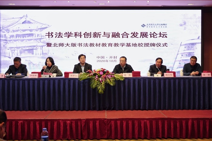 近日,由北京师范大学出版社(集团)有限公司和北师大版书法教材编写组联合主办,开封市教育体育局协办的“书法学科创新与融合发展论坛暨北师大版书法教材教育教学基地校授牌仪式”在河南省开封市举行。本次论坛以书法学科创新与融合发展为主题,并举行北师大版书法教材教育教学基地校授牌仪式。