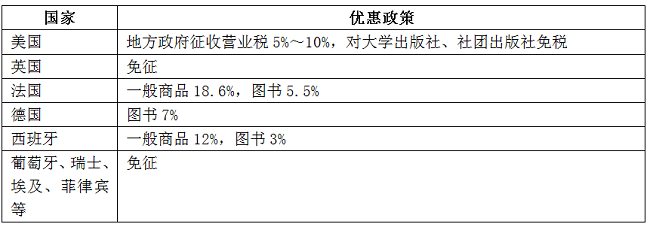 表3 世界部分国家对出版行业征收增值税的优惠政策