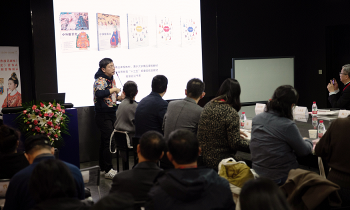 贾玺增副教授在发言中介绍了“服装史论丛书”的整体构想,阐述了《中国服装史》作为国家精品课程的配套教材,力求在内容和知识体系构建上采用新方法,融合服装史、纹样史、流行时尚三个研究方向,构建中国传统服饰文化设计创新的知识体系,并介绍“服装史论教材丛书”中的《中外服装史》《中国服装史》及简明版服装史系列教材的写作特点。同时,介绍了此书在撰写的过程中,如何激发学生学习传统文化的兴趣和热情,如何兼顾“学”与“用”两个方面,为专业学生、服装设计师和服饰爱好者打开了解中国传统文化的通道。
