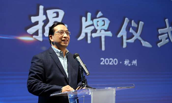 最后,国家开放大学副校长林宇、浙江开放大学副校长郑友取、国家开放大学出版传媒集团总经理匡贵秋、浙江开放大学学习资源中心主任虞江锋共同为国家开放大学音像出版社浙江分社揭牌,共同见证了这个历史性的时刻。